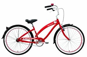 Cruise in style with the Nirve Hello Kitty 26in Retro Ladies 1 Speed Red Cruiser! This bike features a 16in Nirve proprietary Galaxie aluminum frame with 1 speed gearing. It comes equipped with a front hand brake and rear coaster brake, 26in white wall tires, aluminum wheels, and Nirve Kandy Bars (ergonomic handlebars). With an awesome red/black color with Hello Kitty classic paint and graphics, Hello Kitty comfort saddle, and Hello Kitty Bell-this bike is sure to stand out! Get cruisin with the awesome Nirve Hello Kitty 26in Retro Ladies 1 Speed Red Cruiser!