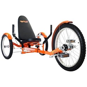 Because you've got places to be! Or because you've got nowhere to be! Whether traveling to a picnic or cruising down the boardwalk, the Mobo Triton Pro Three Wheeled Cruiser - Orange has you covered. Complete with tons of safety features and an ergonomic recumbent design to reduce joint stress, this ride is great for little kids or for those of us who are just a bit older. Enjoy the ride! Additional information: Patented, adjustable frame means one-size-fits-all customization ability; simply adjust according to heights and sizesVersatile maneuverability creates safe, comfortable, and durable useFront freewheel mechanism, padded seat, and inflatable tires create a comfortable, smooth rideCaliper handbrake for smooth slowing and stoppingUnique propulsion system means no loose chains and no grease stains!Recumbent seating design eliminates pressure on the wrists, elbows, and handsRecommended for ages 9 and up About Mobo Mobo is a specialty product of ASA Products. Having been so successful as a Tri-ton brand, Mobo is now representative of a larger mission- to bring impactful fun and practical mobility to people everywhere. Designed for safe use by children and the elderly, Mobo products are great for everyone in the family. Committed to creating the most innovative, stylish active lifestyle products, Mobo has you covered. This three-wheeled cruiser line is the new way to travel- at the beach, to the park, or in the neighborhood. Wheels: 20-inch front; 16-inch rear. Strong steel frame construction. Great for all ages. 250-pound weight capacity. Dimensions: 50 - 63L x 28W x 29H inches.