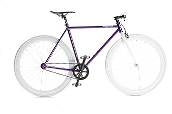 Pure Fix Cycles created the ultimate Fixie bike starting with the simplicity and elegance of an urban geometry frame and straight fork made from durable high tensile steel. A Neco threadless Headset holds Zoom riser handlebars with Oury grips on a Promax stem. The classic Vader saddle gets the job done, without frills, and it keeps the weight down. Radius front brakes stop when asked and are easily removed for a purist ride. Hubs are custom Pure Fix Lasered KT Quandos. Kenda Kwest 700cc x 28 tires give you control and contact. Pressure retention is courtesy of 60mm Presta valves. Wellgo pedals and cages connect you to a Lasco three-piece sealed bearing crank set. The gear ratio is 44:16 with 74.25 gear inches using a KMC chain. All this joy comes out with a weight of 22-24 lbs., depending on size.