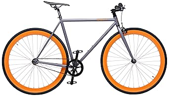 Pure Fix Cycles created the ultimate Fixie bike starting with the simplicity and elegance of an urban geometry frame and straight fork made from durable high tensile steel. A Neco threadless Headset holds Zoom riser handlebars with Oury grips on a Promax stem. The classic Vader saddle gets the job done, without frills, and it keeps the weight down. Radius front brakes stop when asked and are easily removed for a purist ride. Hubs are custom Pure Fix Lasered KT Quandos. Kenda Kwest 700cc x 28 tires give you control and contact. Pressure retention is courtesy of 60mm Presta valves. Wellgo pedals and cages connect you to a Lasco three-piece sealed bearing crank set. The gear ratio is 44:16 with 74.25 gear inches using a KMC chain. All this joy comes out with a weight of 22-24 lbs., depending on size.