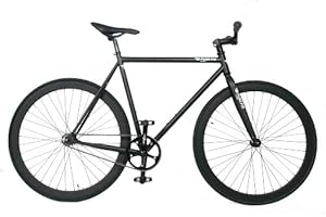 Pure Fix Cycles created the ultimate Fixie bike starting with the simplicity and elegance of an urban geometry frame and straight fork made from durable high tensile steel. A Neco threadless Headset holds Zoom riser handlebars with Oury grips on a Promax stem. The classic Vader saddle gets the job done, without frills, and it keeps the weight down. Radius front brakes stop when asked and are easily removed for a purist ride. Hubs are custom Pure Fix Lasered KT Quandos. Kenda Kwest 700cc x 28 tires give you control and contact. Pressure retention is courtesy of 60mm Presta valves. Wellgo pedals and cages connect you to a Lasco three-piece sealed bearing crank set. The gear ratio is 44:16 with 74.25 gear inches using a KMC chain. All this joy comes out with a weight of 22-24 lbs., depending on size.