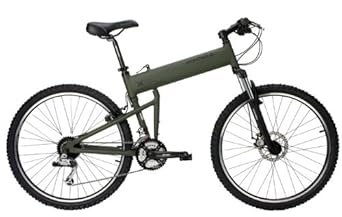 Tough rugged and ready for anything this mountain bike is dropped from the sky to land prepared for action. The speed of unfolding this bike for riding will blow you away. No tools required to fold and stash in your Humvee. The Paratrooper comes equipped with front suspension 24-speed Trigger shifters a compass and heavy duty double cage aluminum pedals to tackle the roughest terrain. The Paratrooper is no ordinary folding bike - it`s a sturdy powerful mountain bike that happens to fold. The Paratrooper Tactical Bike uses all standard mountain bike wheels and components serviceable at any bike shop. Features: Full-size rugged mountain bike deployable on almost any terrain A stealth-minimal signature that is second only to a walking soldier Off body load bearing equals transport of increased loads equals lesser reliance on resupply Up to 75 miles daily range with low-no logistic support necessary Folds to 36in x 30in x 12in in under thirty seconds without the use of tools Easy to transport you can take this bike anywhere - you can even jump with it Patented technology not available from any other company Front disk brakes give rapid and stronger braking power Equipped with industry standard wheels and components serviceable at any bike shop