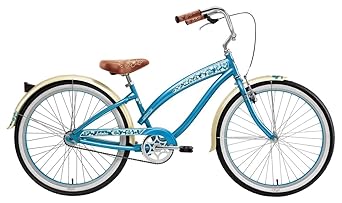 This women's single-speed Lahaina cruiser bicycle by Nirve® features a retro-inspired paint scheme that's ideal for an easy vacation ride. It is constructed around a high-tensile steel frame, and it is equipped with a comfortable double-spring saddle and full fenders. The vintage-style paint design is complemented by the custom tread pattern. Stopping power is provided by a rear coaster brake and front hand brake.